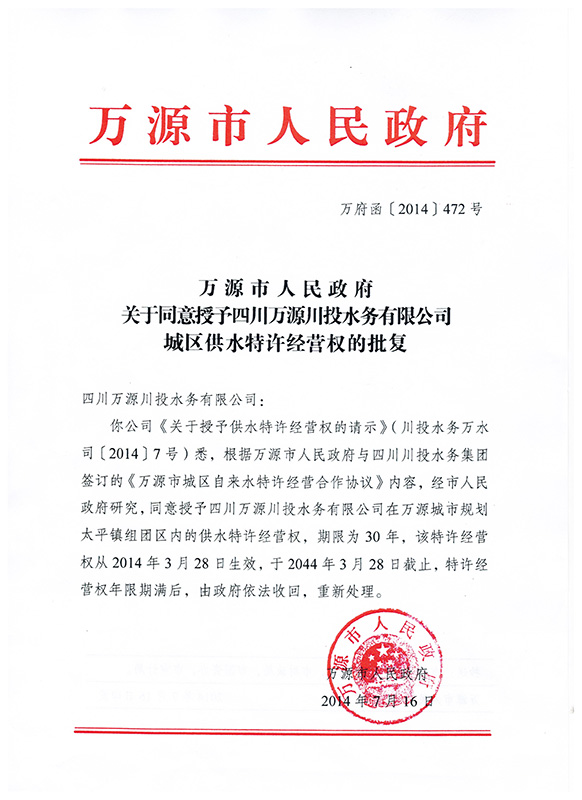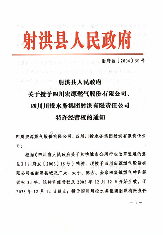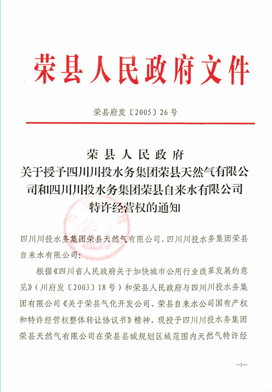 榮縣水司、榮縣氣司特許經(jīng)營權