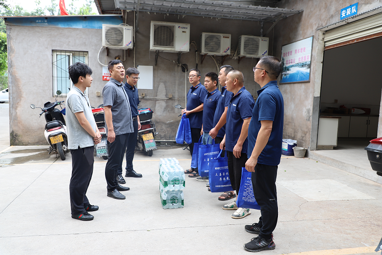 支部書記、執(zhí)行董事龔慶一行深入公司廠區(qū)、安裝維修隊及客戶服務中心,為一線職工送去了藿香正氣液、板藍根、風油精、葡萄糖口服液、礦泉水等防暑降溫物資,與職工們親切交談,詳細詢問他們的工作和生活情況。同時囑咐大家要注意勞逸結合,合理安排工作時間,做好防暑降溫措施,并強調(diào)當前正值汛期,生產(chǎn)廠區(qū)要做好防汛措施,加強雷電天氣設施設備安全檢查,確保正常運行。