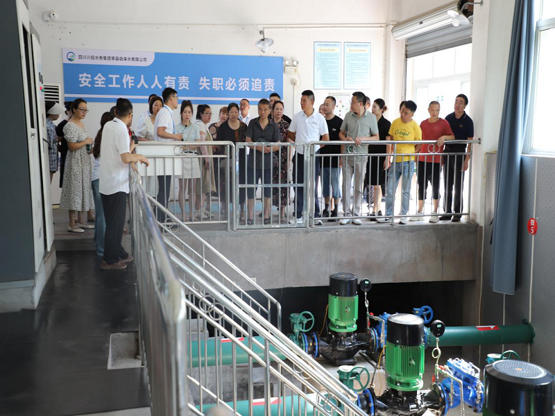 隨后,參會用戶代表頂著烈日酷暑,實地參觀了水廠的取水泵房、技改工程現(xiàn)場、加壓泵房等供水設施設備,用戶更為直觀地了解了自來水生產(chǎn)的全過程生產(chǎn)工藝流程以及在生產(chǎn)過程中的各項成本構成。