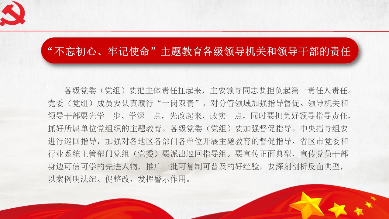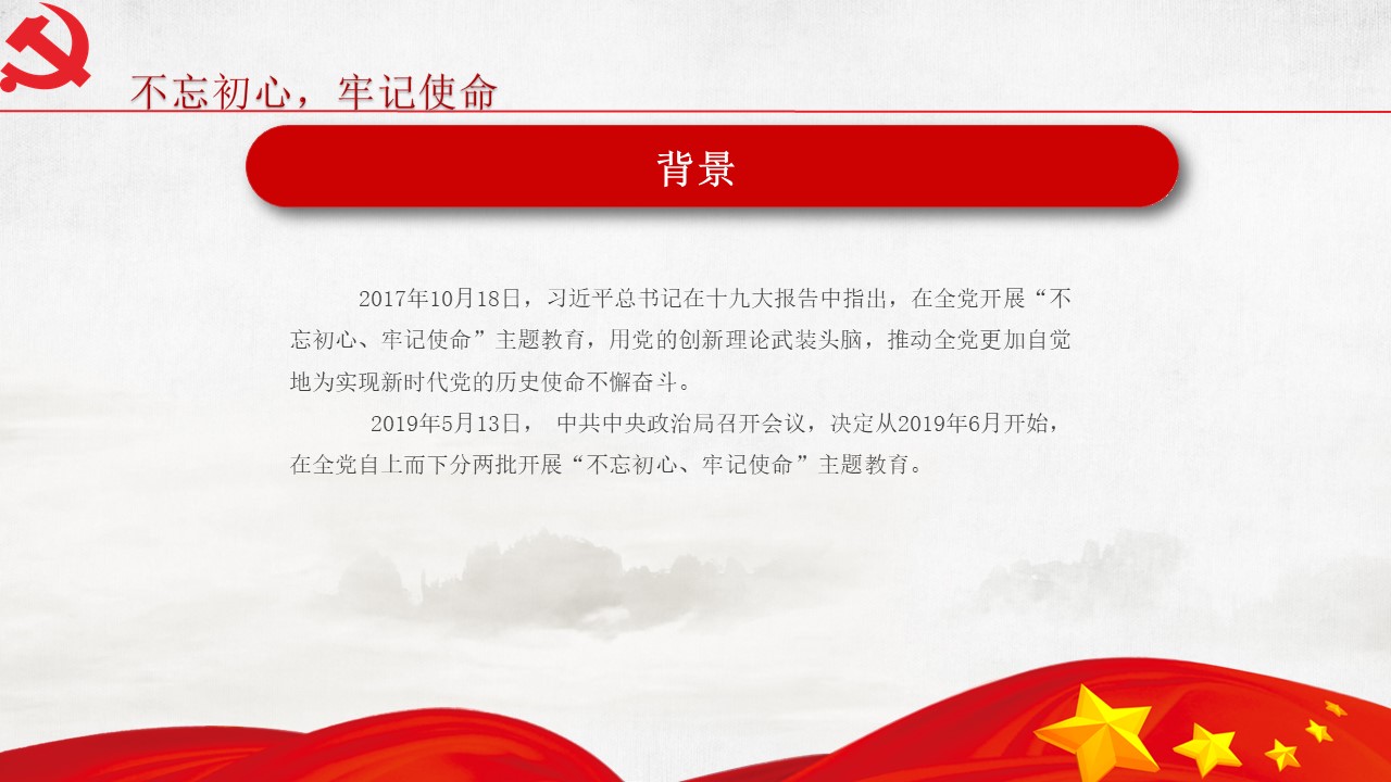5月31日“不忘初心、牢記使命”主題教育工作會議31日在北京召開。中共中央總書記、國家主席、中央軍委主席習近平出席會議并發(fā)表重要講話。他強調,為中國人民謀幸福,為中華民族謀復興,是中國共產黨人的初心和使命,是激勵一代代中國共產黨人前赴后繼、英勇奮斗的根本動力。開展“不忘初心、牢記使命”主題教育,要牢牢把握守初心、擔使命,找差距、抓落實的總要求,牢牢把握深入學習貫徹新時代中國特色社會主義思想、...