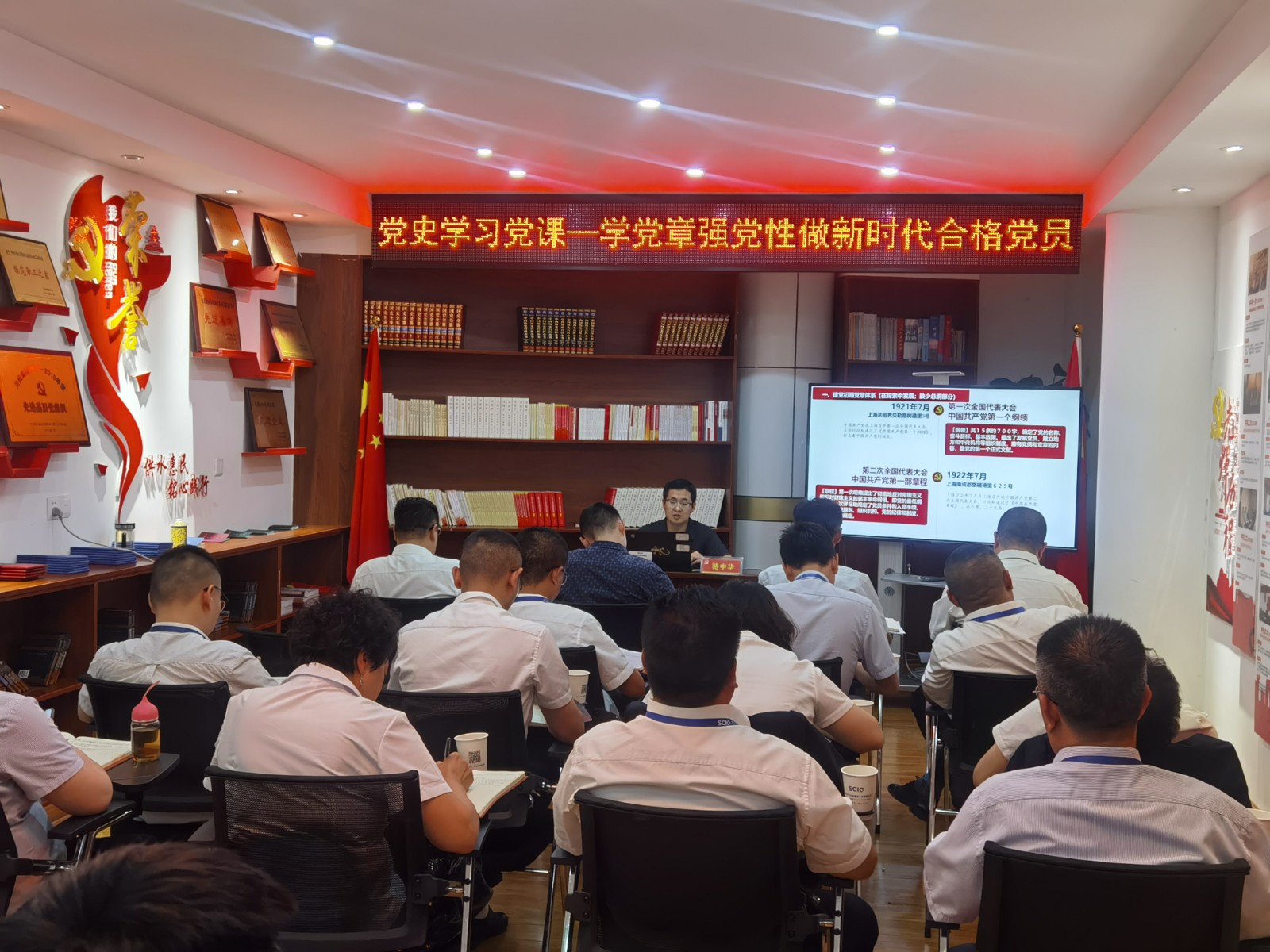 為扎實開展黨史學(xué)習(xí)教育,進一步豐富學(xué)習(xí)內(nèi)容,5月26日下午,川投水務(wù)大英公司黨支部根據(jù)黨史學(xué)習(xí)教育計劃,結(jié)合公司工作實際,開展黨史學(xué)習(xí)教育專題黨課暨黨員學(xué)習(xí)會。邀請大英縣直機關(guān)工委常務(wù)副書記駱中華講黨史學(xué)習(xí)教育專題黨課。黨員大會受大英公司執(zhí)行董事、總經(jīng)理王文川委托,由大英公司黨支部副書記周義雙主持會議,黨支部組織委員、副總經(jīng)理王洪先,中層副職以上干部、全體正式黨員、預(yù)備黨員、入黨積極分子、重要崗位人員參加會議。