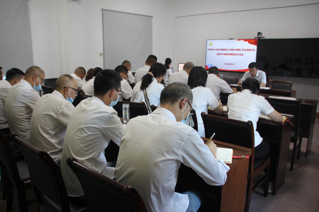 按照川投集團(tuán)黨委、川投水務(wù)集團(tuán)黨委關(guān)于黨史學(xué)習(xí)教育總體安排部署,進(jìn)一步推動(dòng)黨史學(xué)習(xí)教育走深走實(shí),8月27日下午,中江水司黨支部組織召開(kāi)黨史學(xué)習(xí)教育專(zhuān)題組織生活會(huì),會(huì)議由黨支部書(shū)記朱禹同志主持。支部19名黨員參加了會(huì)議。