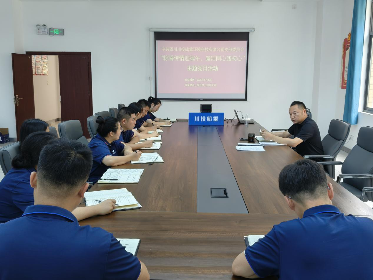2025年5月30日上午,川投船重公司黨支部組織開展“粽香傳情迎端午,廉潔同心踐初心”主題黨日活動,推動清廉文化入腦入心。