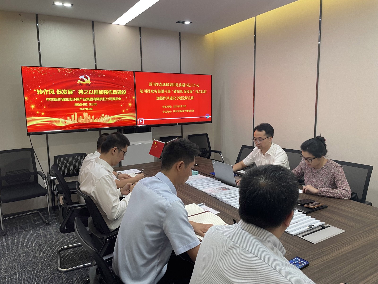 5月13日,按照四川發(fā)展黨委、四川生態(tài)環(huán)保集團(tuán)黨委“深化改革、創(chuàng)新發(fā)展”紀(jì)律作風(fēng)整頓工作總體安排,為持續(xù)推進(jìn)紀(jì)律作風(fēng)整頓工作走深走實(shí),四川生態(tài)環(huán)保集團(tuán)黨委副書記王小元赴川投水務(wù)集團(tuán)開(kāi)展“深化改革、創(chuàng)新發(fā)展”紀(jì)律作風(fēng)整頓專項(xiàng)督導(dǎo)檢查工作暨講授“轉(zhuǎn)作風(fēng) 促發(fā)展”持之以恒加強(qiáng)作風(fēng)建設(shè)專題黨課,川投水務(wù)集團(tuán)黨委委員、副總經(jīng)理嚴(yán)斯亮,副總經(jīng)理譚衛(wèi)鵬,黨群紀(jì)檢工作部部長(zhǎng)李至彬陪同檢查。