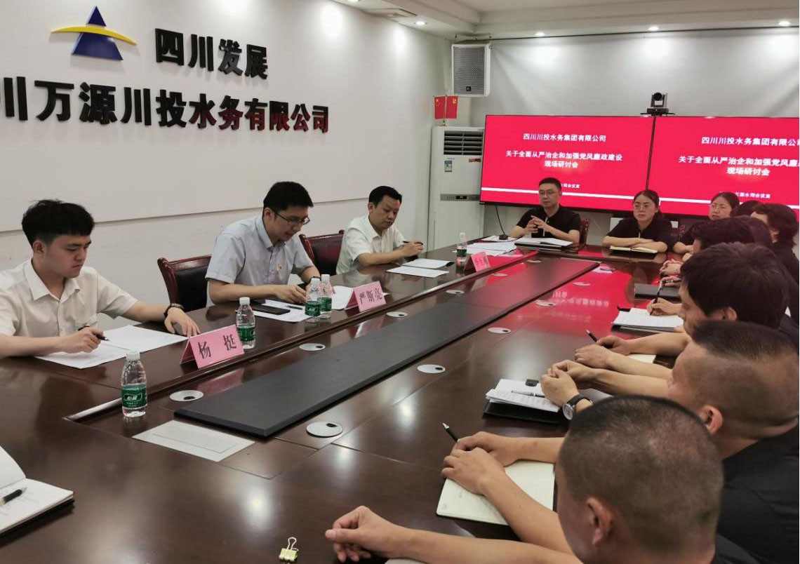 6月14日,為深度了解掌握廣大黨員干部職工對萬源水司加強全面從嚴治企和加強黨風廉政建設的意見和建議,川投水務集團黨委委員、副總經理嚴斯亮同志帶領調研小組赴萬源水司開展“全面從嚴治企和加強黨風廉政建設”現場專題調研會。萬源水司黨員干部、各部門員工代表共計25人參加會議。