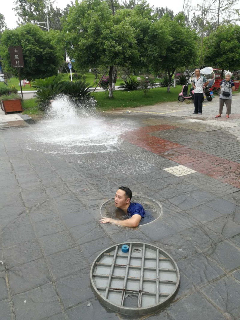 事情的經(jīng)過(guò)是這樣:2020年8月7日早上8時(shí)許,四川省大英縣天星大道一消防栓損壞,川投水務(wù)大英水司聞?dòng)嵉谝粫r(shí)間組織維修搶險(xiǎn)隊(duì)伍前往現(xiàn)場(chǎng)排險(xiǎn)處置。當(dāng)維修人員趕到現(xiàn)場(chǎng)時(shí),消防水呈水柱狀外噴,不僅路面大量積水,閥門井也早已被外噴的消防水灌滿。此時(shí)正值用水早高峰,如果選擇關(guān)掉主管閥門,將會(huì)導(dǎo)致附近區(qū)域大面積停水。為了最大限度保障城區(qū)居民用水,視頻中的主人公魏巍不假思索地撬開閥門井蓋,在短短1分多鐘時(shí)間內(nèi)5次潛至近2米深的水下成功關(guān)閉閥門,并以最快的速度更換損壞的消防栓,恢復(fù)了該片區(qū)的正常供水,沒有引發(fā)大面積停水。