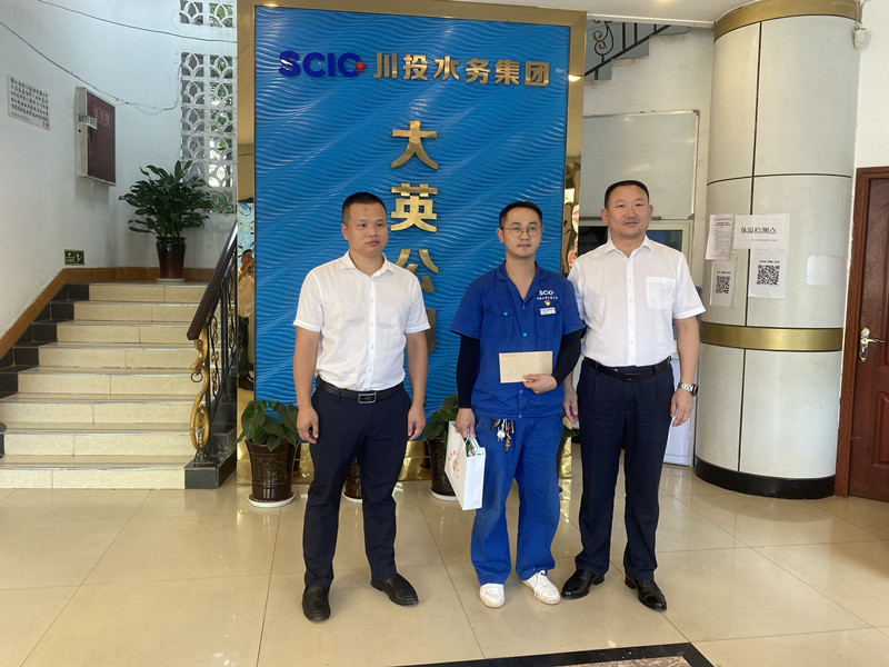 8月10日下午,大英縣委副書記、縣長(zhǎng)胡銘超來(lái)到川投水務(wù)大英水司,對(duì)“開關(guān)俠”魏巍勇于奉獻(xiàn)、保障供水、弘揚(yáng)正能量的行為給予充分肯定,并送上慰問和祝福。