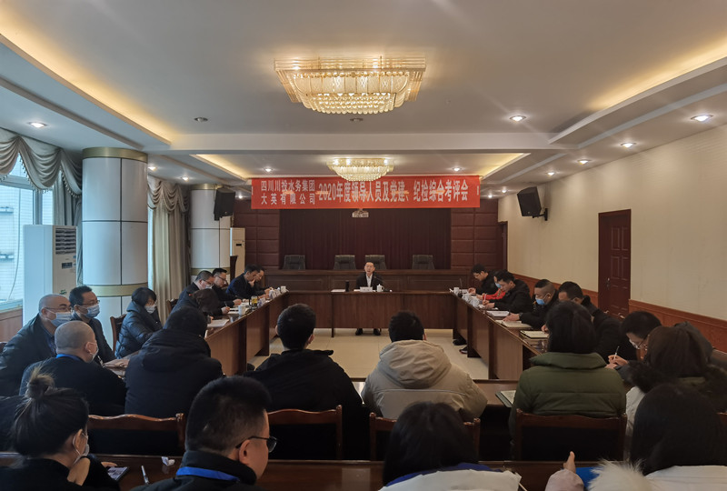 2021年1月29日,川投水務(wù)集團黨委副書記、總經(jīng)理鄧銳、人力資源部部長候獻國、安全環(huán)保部部長馬玉斌、黨群工作部劉言一行對大英水司2020年生產(chǎn)經(jīng)營、團隊建設(shè)、企業(yè)黨建、廉潔建設(shè)及安全環(huán)保等工作開展情況進行綜合考評。大英公司班子成員、中層管理人員、員工代表參加考評。