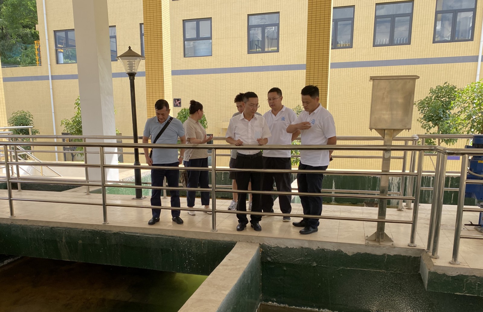 2021年7月14日下午,川投水務(wù)集團(tuán)黨委副書(shū)記、總經(jīng)理鄧銳率經(jīng)營(yíng)管理部部長(zhǎng)王鎮(zhèn)、安全環(huán)保部部長(zhǎng)馬玉斌到川投船重一枝山污水處理廠督導(dǎo)生態(tài)環(huán)境保護(hù)工作。川投船重董事長(zhǎng)劉祝,建設(shè)安全部經(jīng)理李軍,綜合管理部經(jīng)理張梅等相關(guān)人員陪同督導(dǎo)。