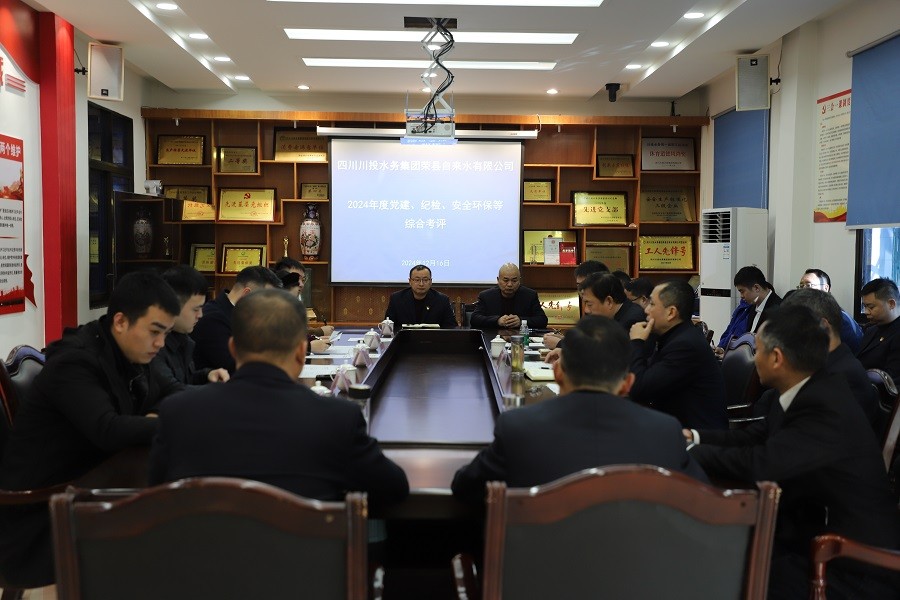 12月16日上午,川投水務(wù)集團(tuán)黨委委員、副總經(jīng)理唐韜率川投水務(wù)第二考核組對(duì)榮縣公司開展2024年度黨建、紀(jì)檢、安全環(huán)保等綜合考評(píng)工作。榮縣公司黨支部書記、執(zhí)行董事、總經(jīng)理龔慶及副總經(jīng)理趙勇、中層管理干部、職工代表共計(jì)24人參加會(huì)議。