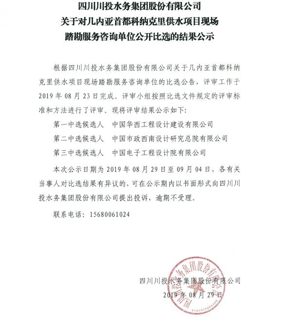 上一條:四川川投水務(wù)集團(tuán)股份有限公司 關(guān)于幾內(nèi)亞首都科納克里供水項(xiàng)目現(xiàn)場踏勘服務(wù)咨詢單位比選公告