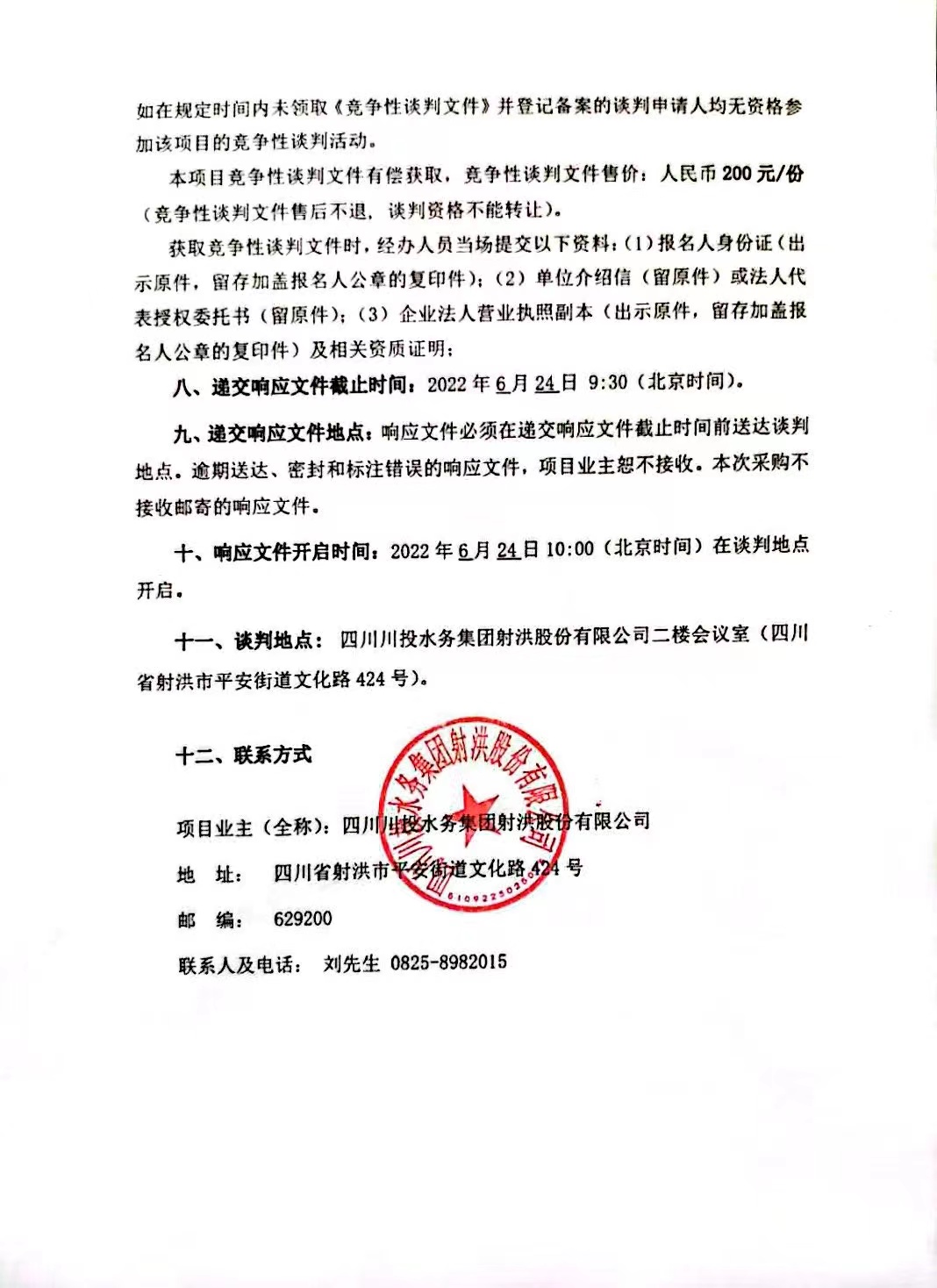 上一條:四川川投水務(wù)集團(tuán)射洪股份有限公司花果山二次供水增壓設(shè)備采購(gòu)項(xiàng)目競(jìng)爭(zhēng)性談判結(jié)果公示